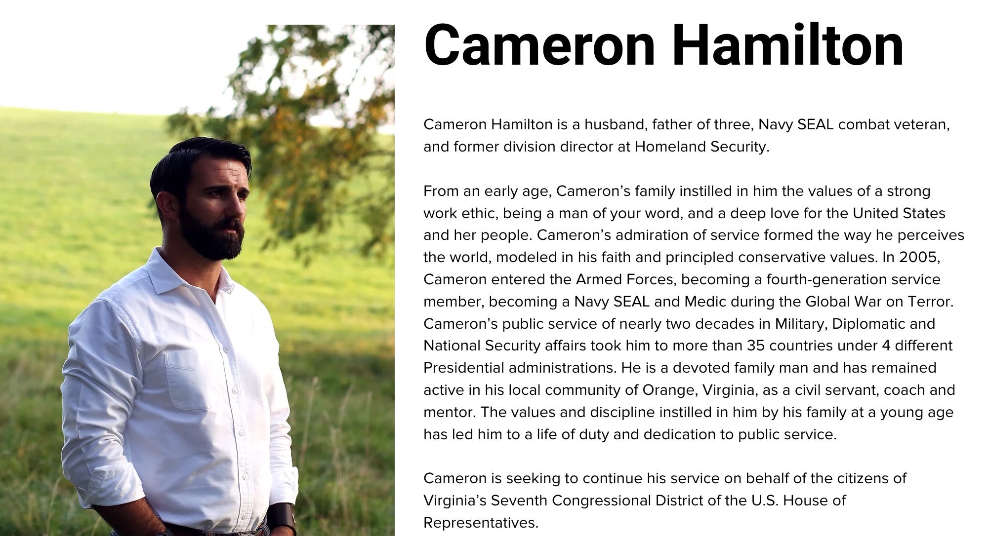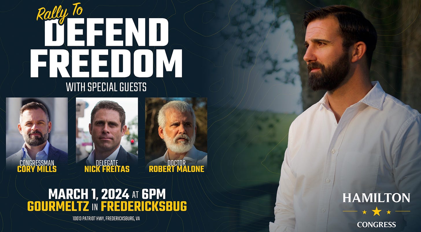 Today, we have to drive to Fredericksburg to attend an event in support of a true patriot, Cameron Hamilton, who is running for the Virginia Congress -7th district.