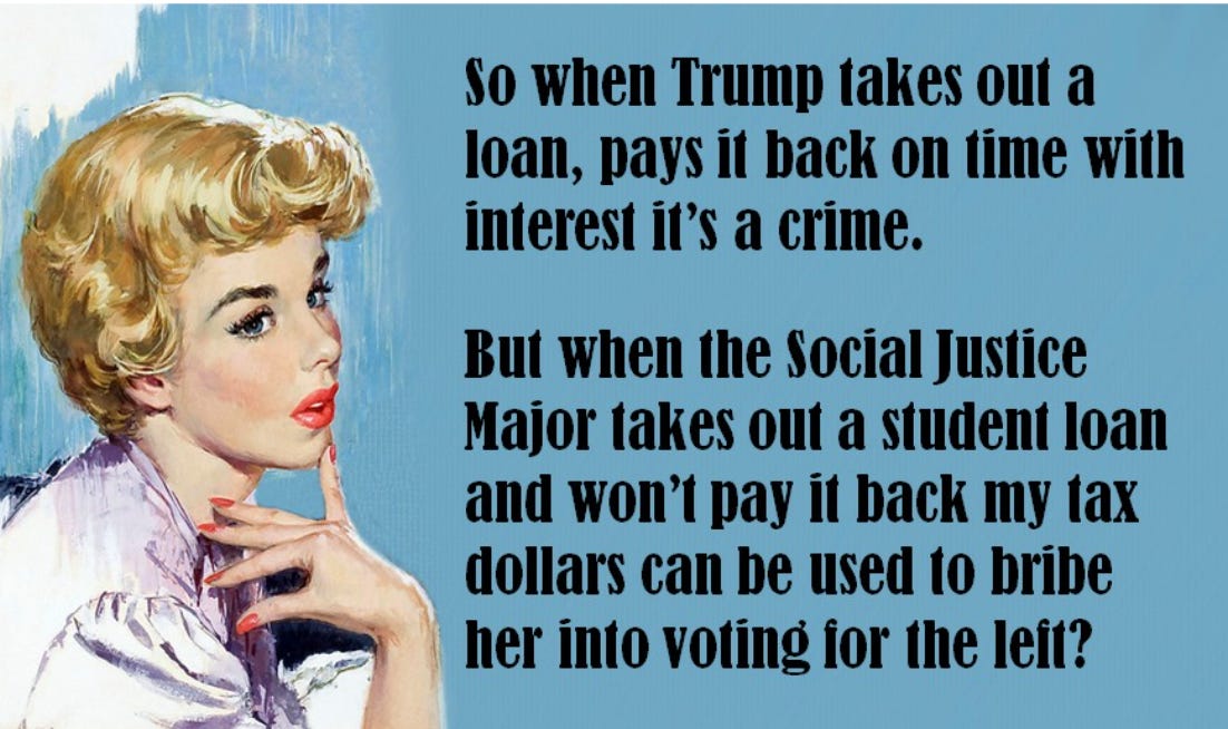 The best describing the Biden communist et al regime is Trump loan crime vs student loan bribe!