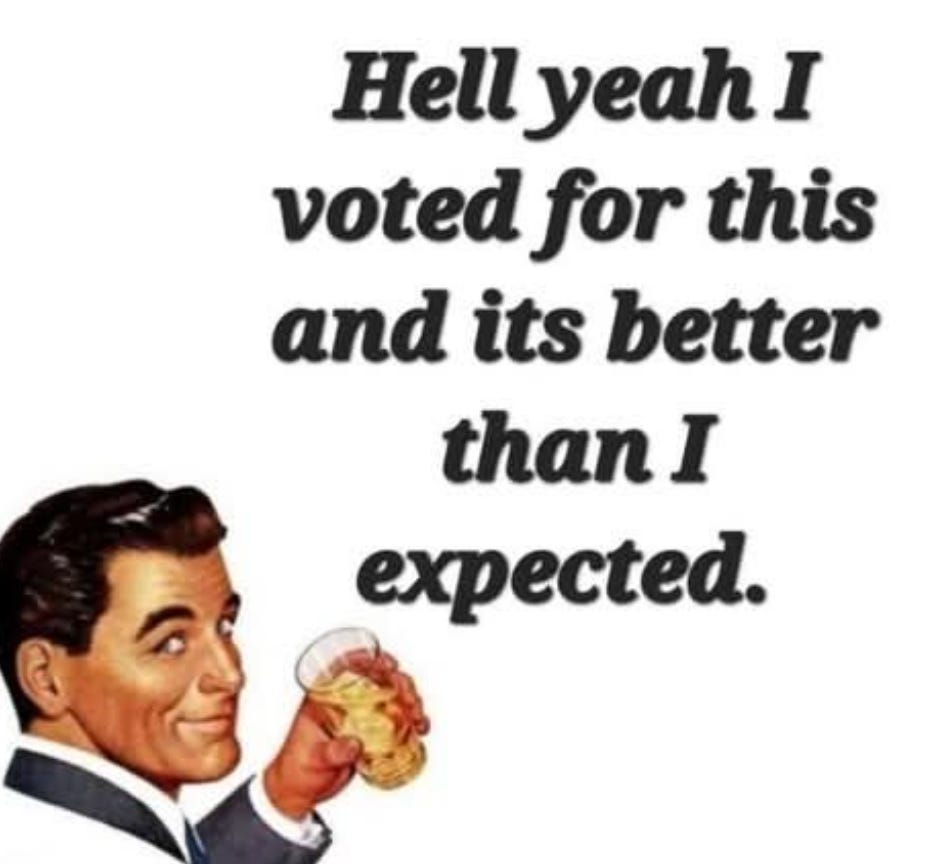 As always, the funnies are so creative. “Hell yeah I voted for this and it’s better than I expected.”