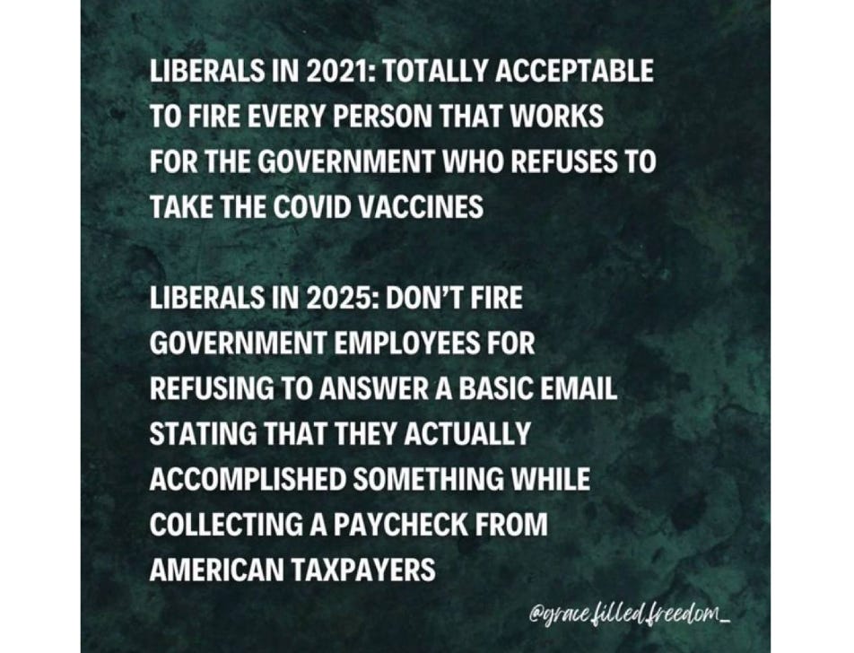 Isn’t it strange when Biden was firing federal employees for refusing his vaccine not one Democrat spoke up. But firing federal workers for not doing their job and wasting billions in tax payer dollars is the end of democracy as we know it, according to the democrats.