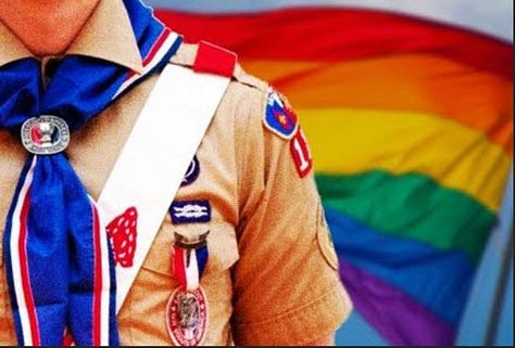 I was an Eagle Scout back when it was still the Boy Scouts whose Scout Oath, Law, Motto (“be prepared”), and Slogan (“do a good turn daily”) espoused traditional family values rarely discussed today with notable exceptions such as Jordan Peterson. For us, it was all about backpacking into the Arizona/ Colorado/ Utah wilderness (not Pride, sex, or pedos).