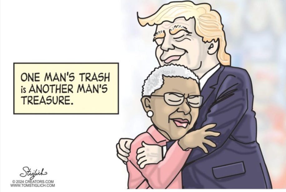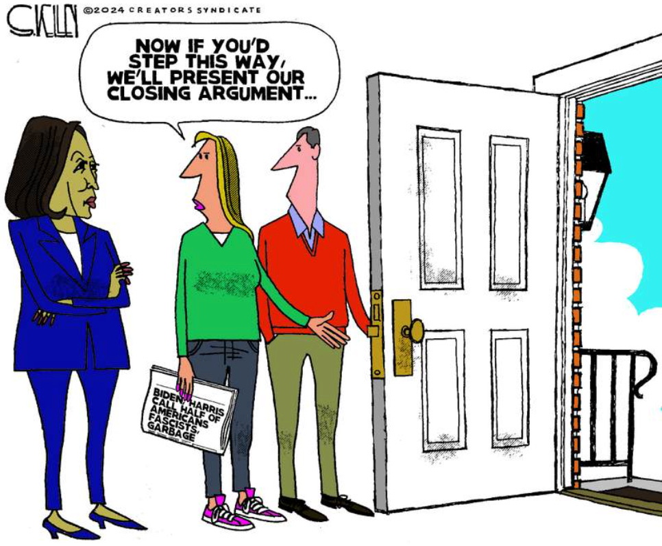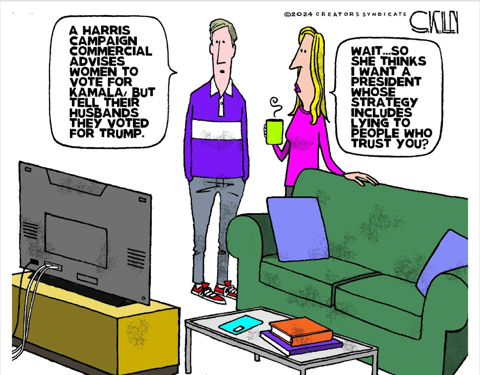 I see one of the cartoons above is sort of a follow-up to yesterday's article, showing a Harris-Walz campaign ad narrated by Julia Roberts.