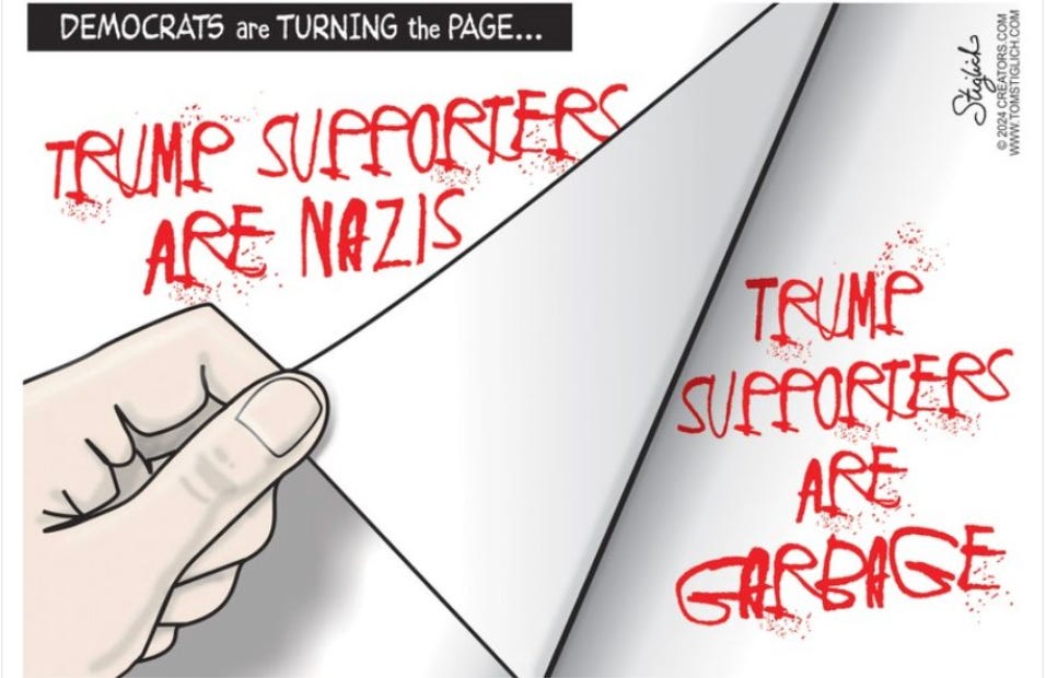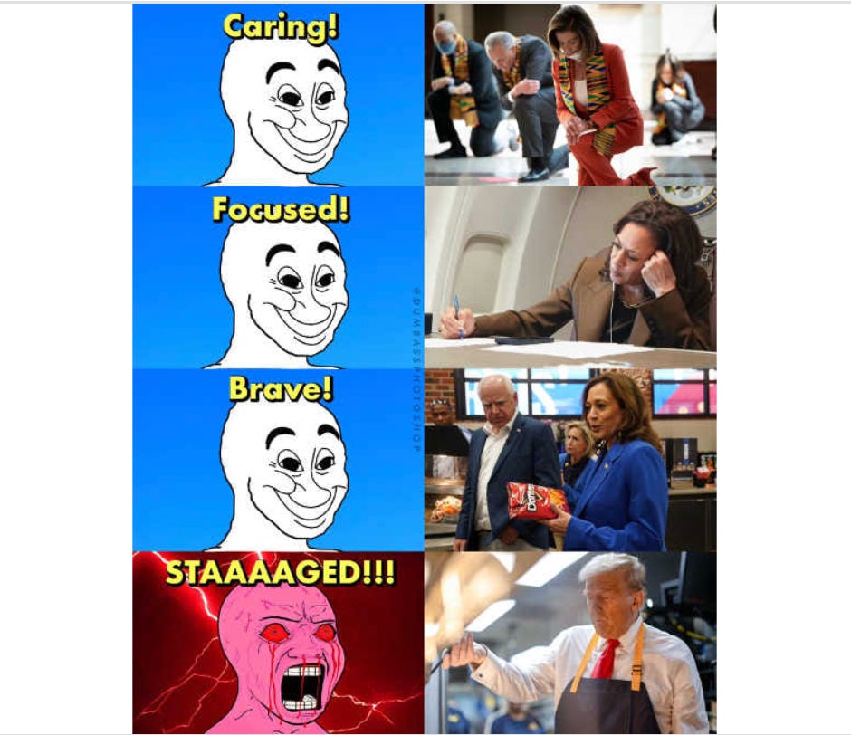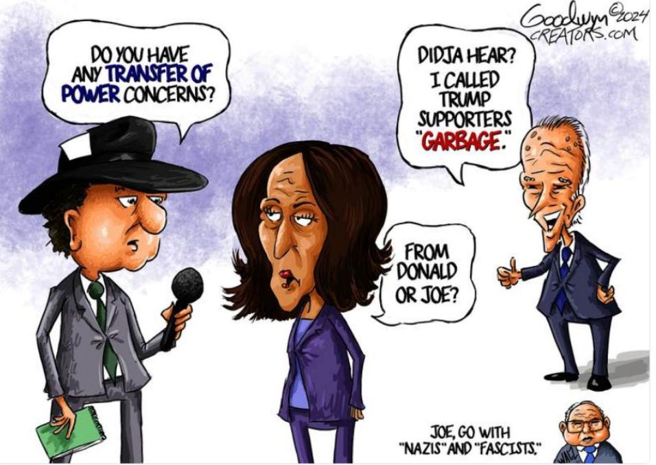 On a serious note: Lets sum things up, the Harris campaign’s final pitch to get your vote, it’s not lowering inflation, it’s not getting energy costs down, it’s not saving businesses and getting the economy going, its not about closing the border, it’s not about ending the killings and the wars in Gaza and the Ukraine, no, it’s all about Trump is Hitler, his supporters, black, white yellow, red, brown are all racist, fascists and Garbage, and Trumps women supporters are stupid and weak. I can only imagine when the new poles come out what we’re all going to be then, child molesters and people sleeping with goats?