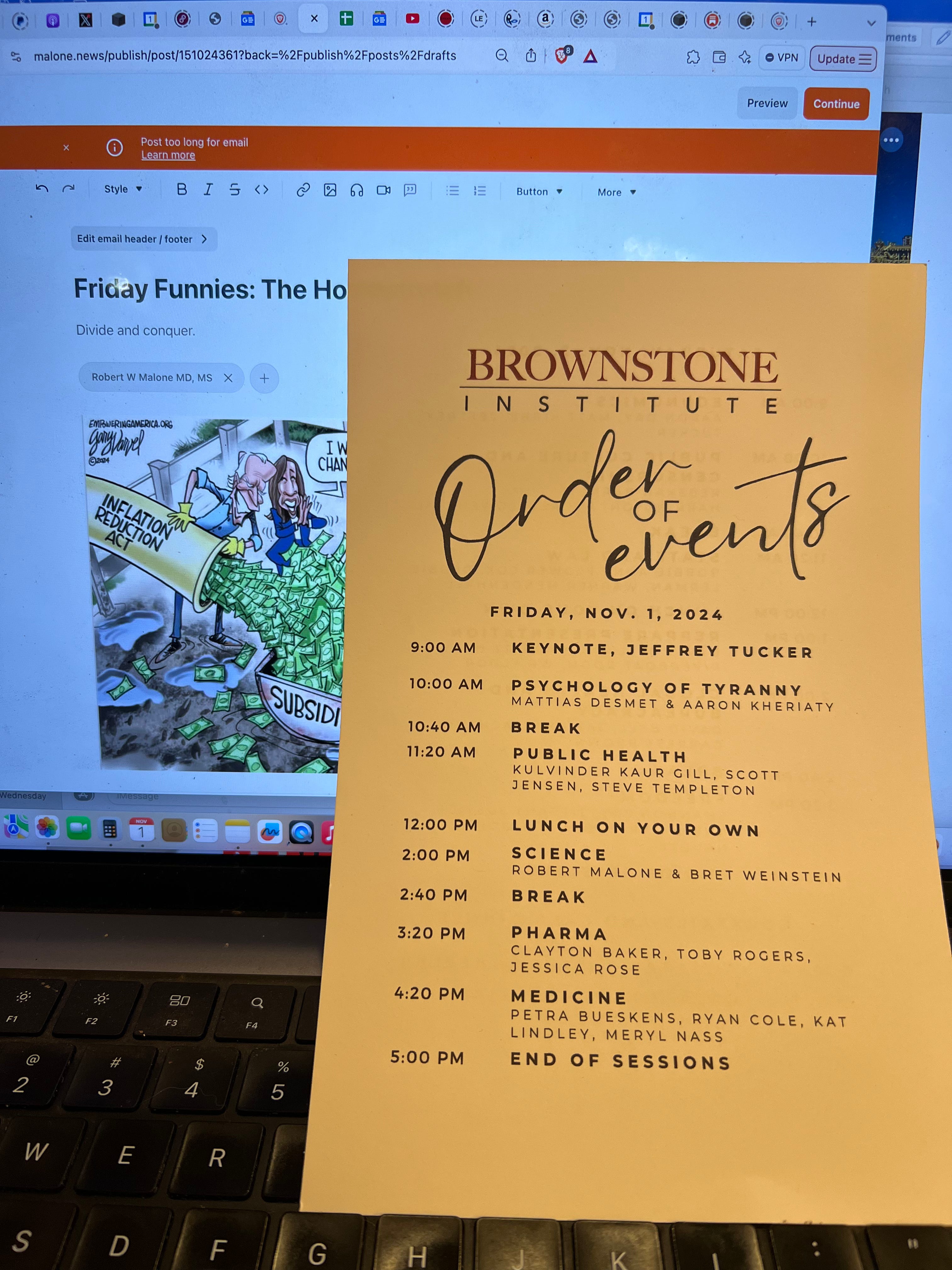 Today, we are at the Brownstone Institute conference and gala. Dr. Mattias Desmet just came up to Jill and I with the comment we hear from just about everybody -who hasn’t seen us in a few months. "He exclaimed - “you two look younger and younger each time I see you.” Frankly, it is true. These comments have been coming at us for two years - as we have radically changed how we eat and how we view food. We look younger, we feel younger, we have more energy - and so we do more physical activity.