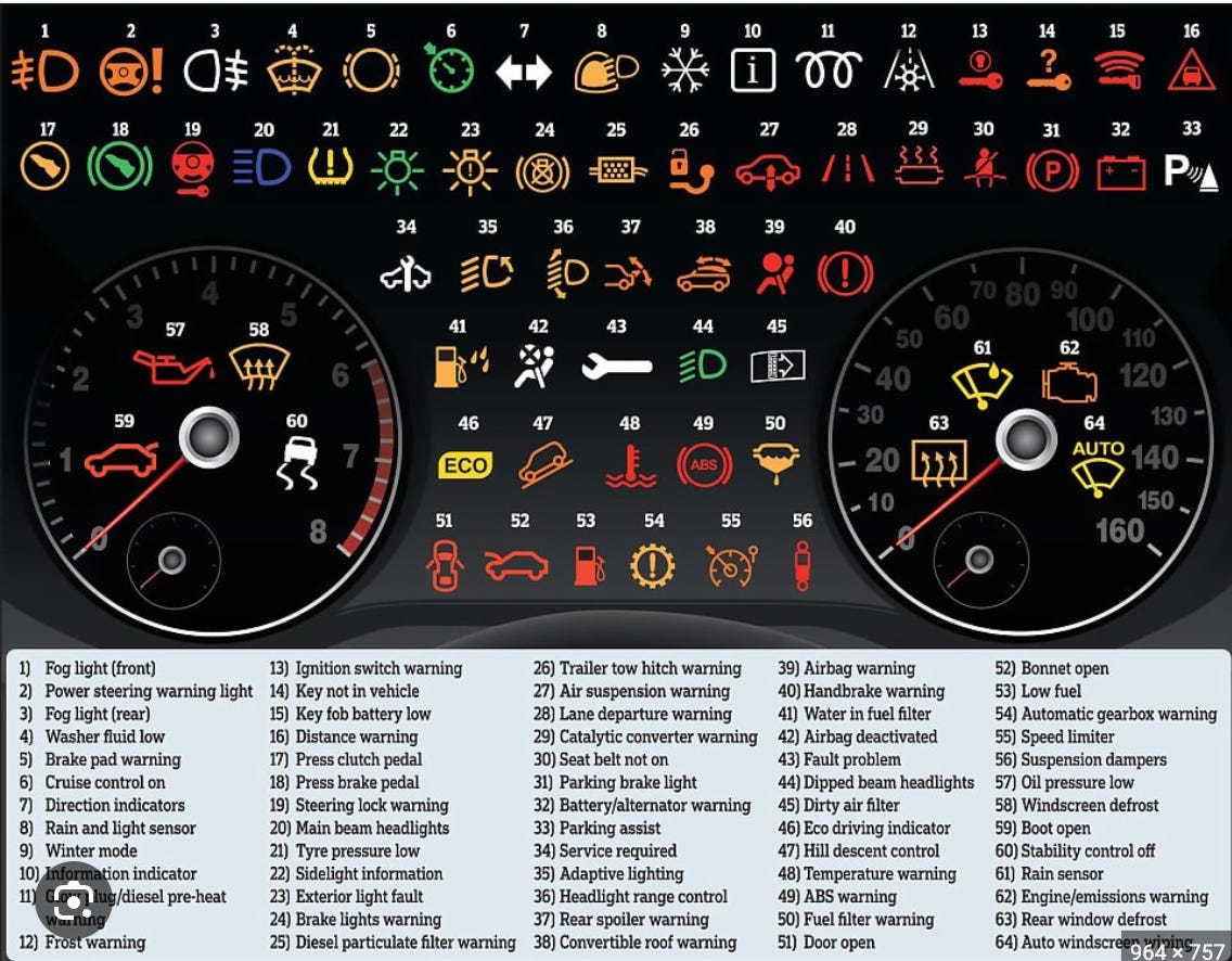 Jill’s pet peeve. Those little, almost impossible to see symbols on the car’s dashboard -