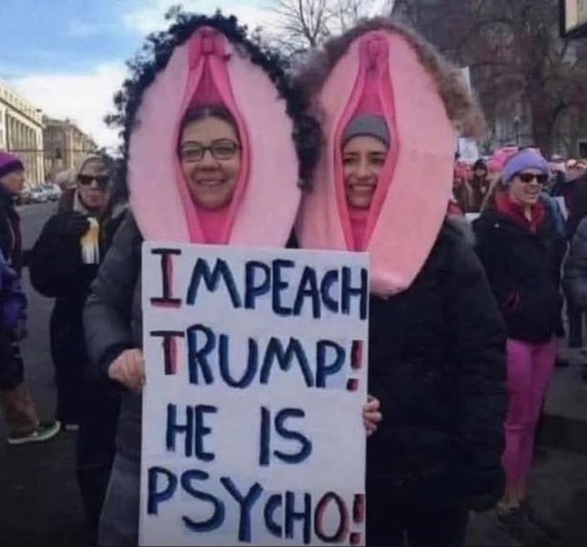 Another great collection, but the human vagina protestors' claiming POTUS to be psycho is priceless. Human Lemmings have the wherewithal to follow, but those two ???