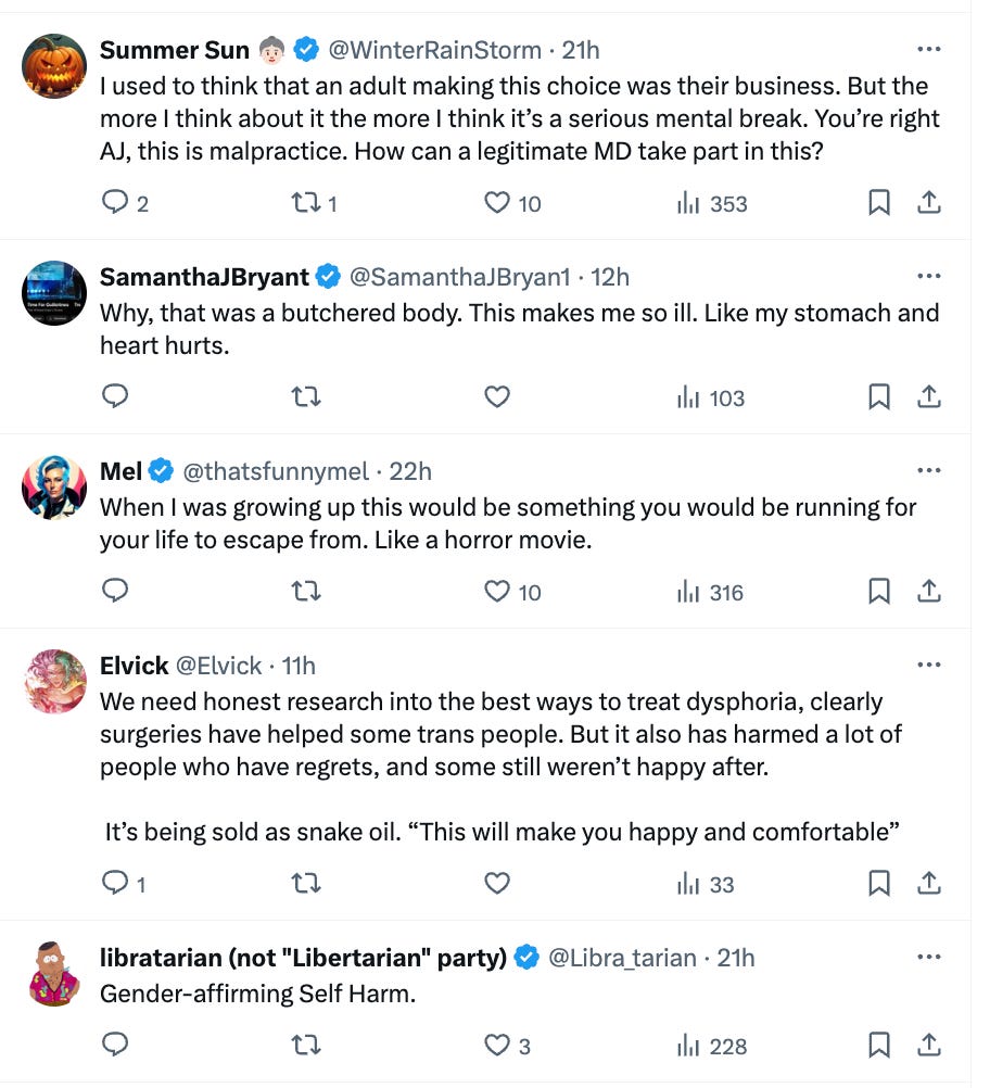 The next video up is AJ speaking about transgender surgeries. His common-sense take on mental health issues regarding gender dysphoria is highly compelling. I love that it is coming from someone who has had to endure the gender ideology indoctrination that seems to be everywhere, all at once - for almost his entire life.