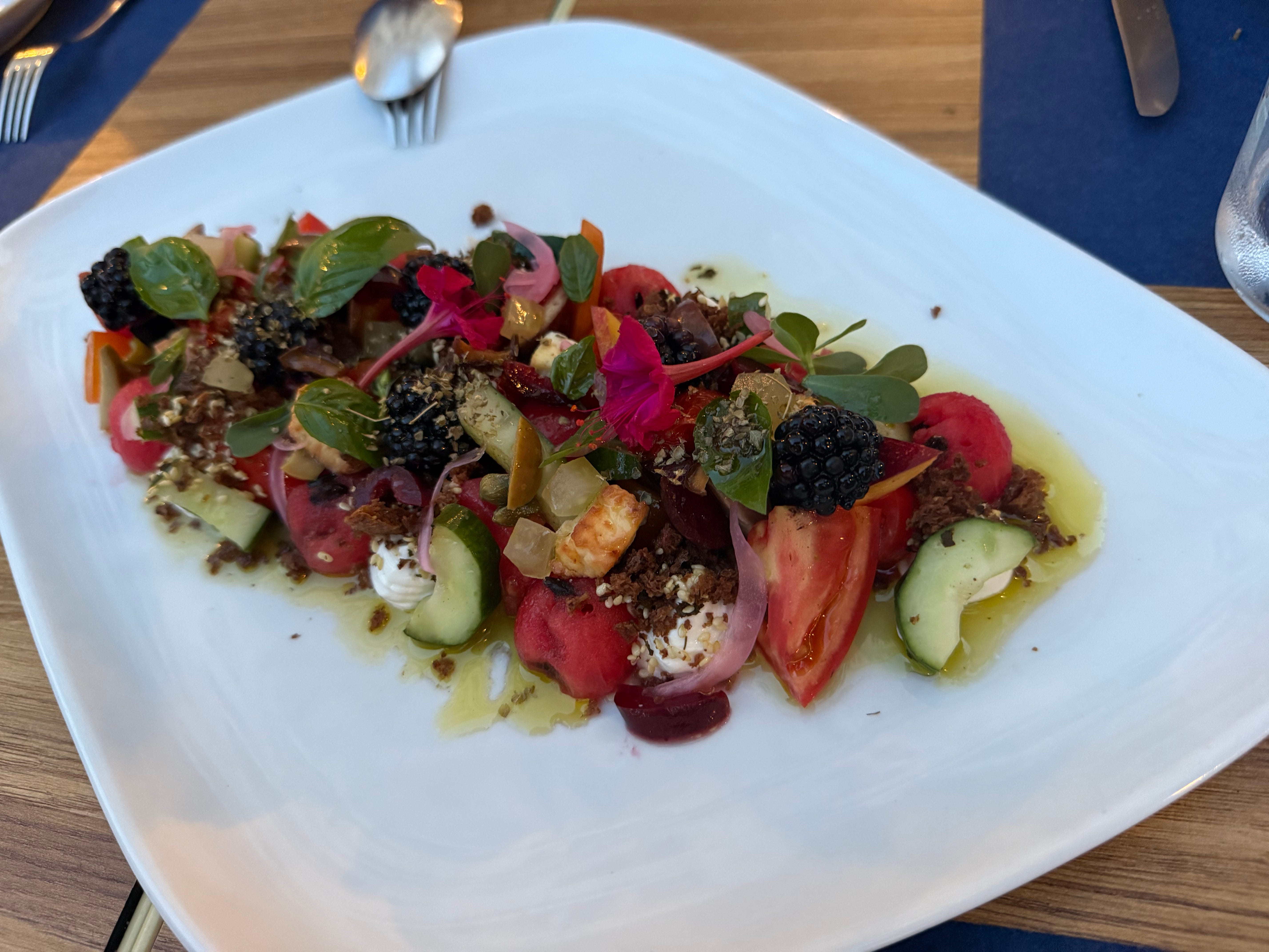Just to say it, the food in Greece and the eastern boot of Italy is fresh, and the presentation is creative in ways that American chefs can’t fathom. Food in the USA just isn’t the same.