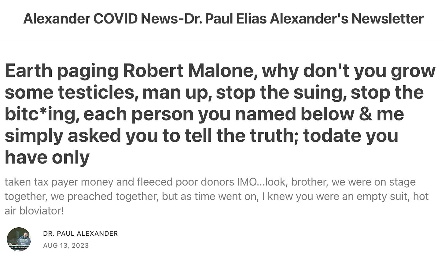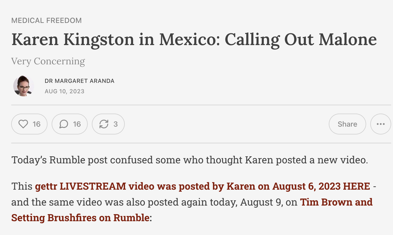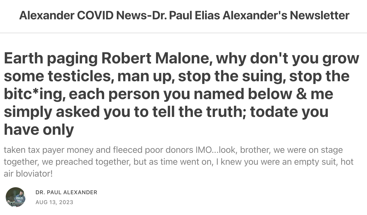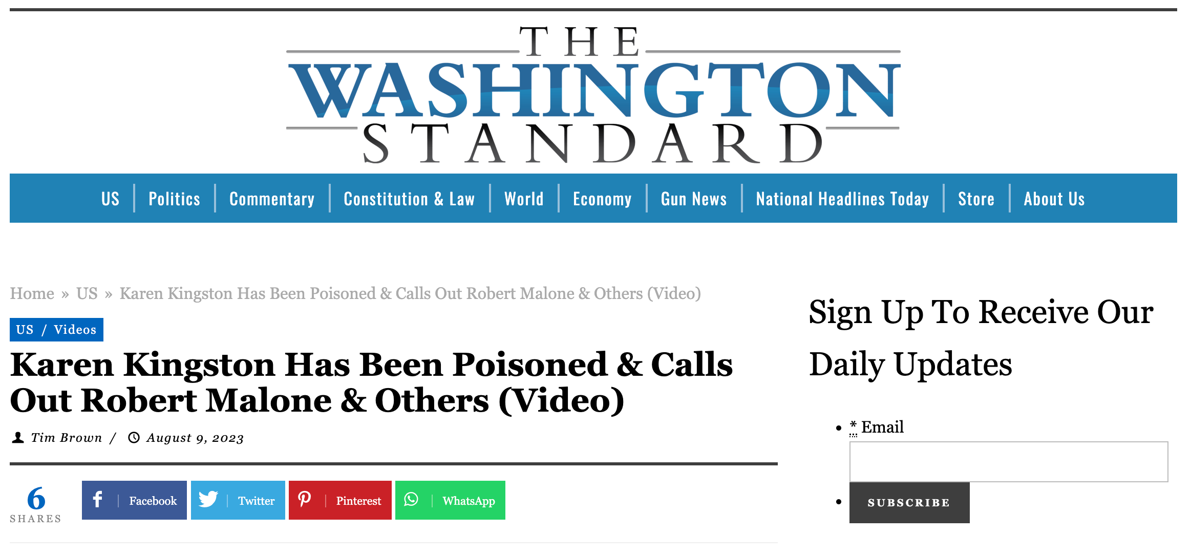 Dr Malone (and Dr/Mrs Malone), you have shown amazing patience and compassion in the case of Karen Kingston. Reaching out to her brother was an act of honor and nobility, and hopefully her family can resolve this unfortunate situation. Like Gulliver vs the Lilliputians, your challenge is to suffer insults of tiny fools while understanding that 2 million worldwide citizens trust you immensely.
