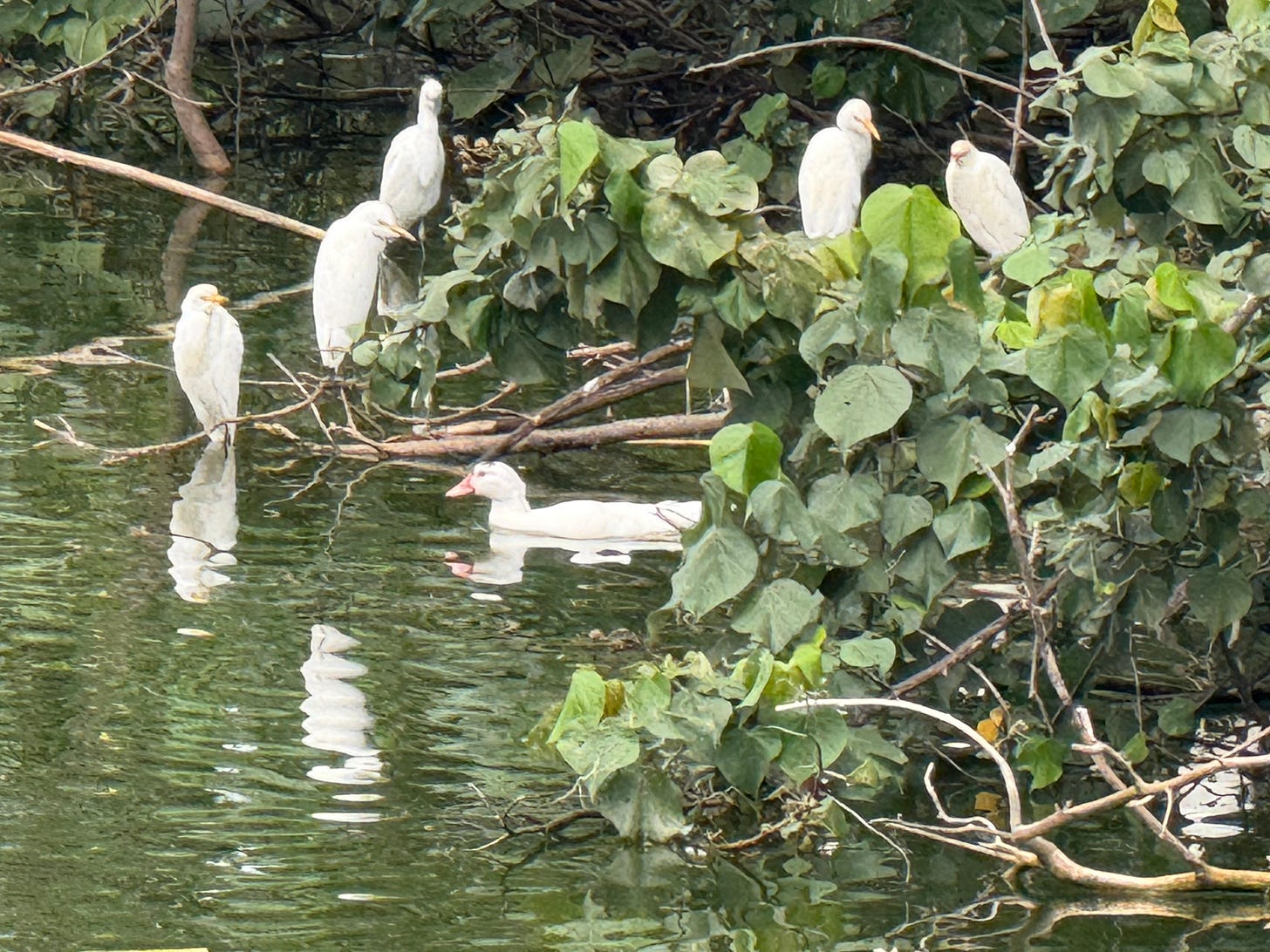 Hundreds of cattle egrets hovered in the trees surrounding the hotel, and a number of white geese graced the waterway.