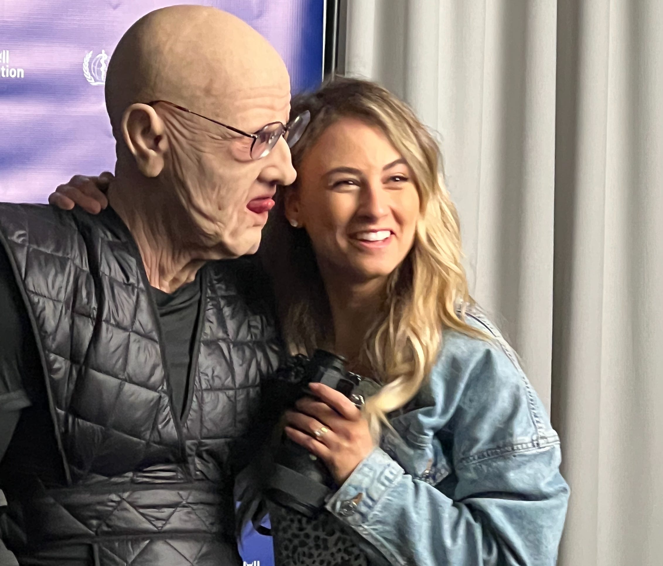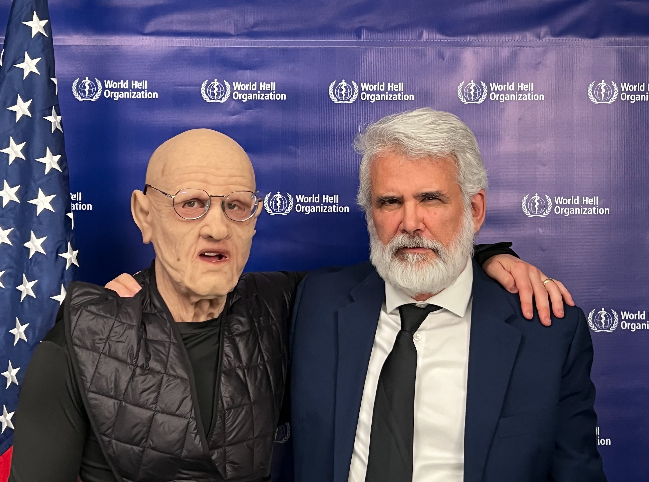 “Klaus” and I hanging out in front of the World Hell Organization backdrop.
