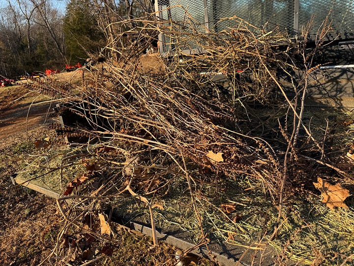 This month has been pretty cold, as I wrote. With a lot of travel, festivities, and work (the kind that involves research) keeping us busy, so farmwork has been at a minimum. Plus, our brand-new tractor blew a hydraulic line and is now sitting in the front of the house, ready for Kubota to get back to work after the holidays and come down to our farm to fix it.