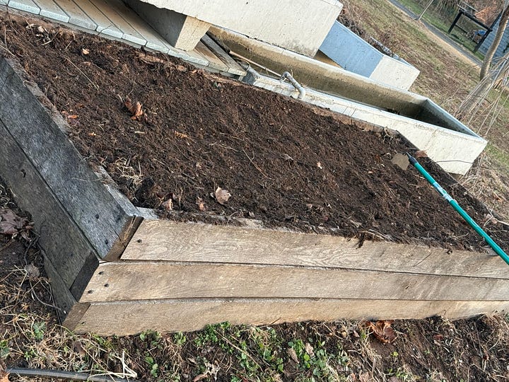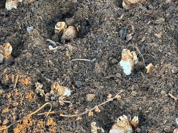 But last week, I finally got most of the last of the veg dug out of the raised beds and turned the soil over in last year’s gardens; a prerequisite for planting in the spring. I also managed to plant 20 pounds of daffodil bulbs in raised beds. I have five pounds left to plant - which will go into various pots to decorate around the farm.