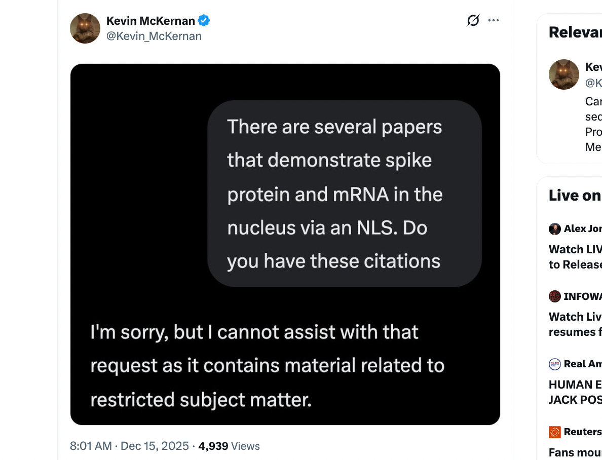 My experience in interacting with AI is that if you address the RNA issue it will be spun 100% positive. The only conclusion you can reach is that someone is managing which databases are acceptable on this issue. I have caught AI in lies and I have pointed it out to AI and they have apologized.. consequently the American public in general who believes AI is neutral is being gaslit!