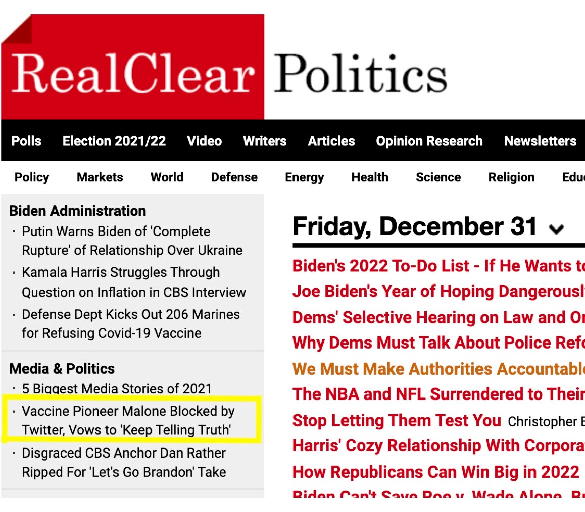 ”Blocked by Twitter, Vaccine Pioneer Malone Says He'll Keep 'Telling the Truth”