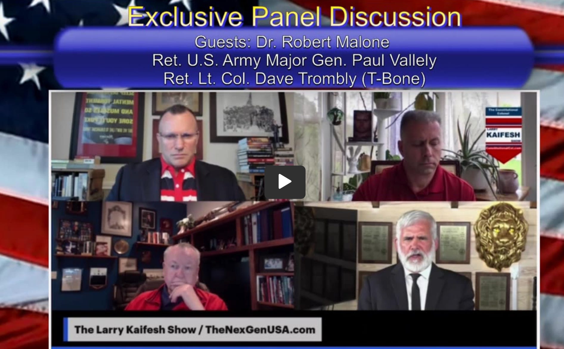 ”Dr. Robert Malone, Ret. Army Major Gen. Paul Vallely and Ret. Lt. Col. Dave Trombly join The Constitutional Colonel Larry Kaifesh Show to discuss the Biden Administration's egregious destruction of military personnel's constitutional rights. The attack on our military was from the top down, starting with Commander in Chief Biden, all the way down to career military leaders who exposed themselves as spineless by allowing and promoting NON-FDA approved experimental vaccine products to be used in the government's illegal and destructive forced mandates of our brave military people.