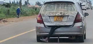 I’ve always maintained that if you are arrested in the Western world for reckless driving, your penance should be a month of driving a taxi in Africa. Yup, that’s a person’s leg hanging out the trunk!