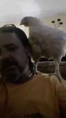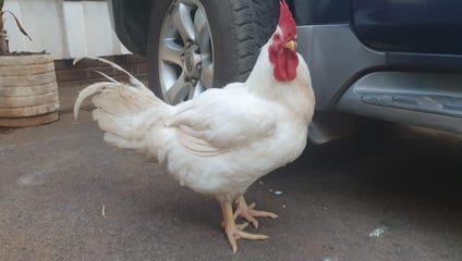 Yeah, right. (Photo above was the chicken Greg rescued. Photo below is what Duck “transitioned” into.)