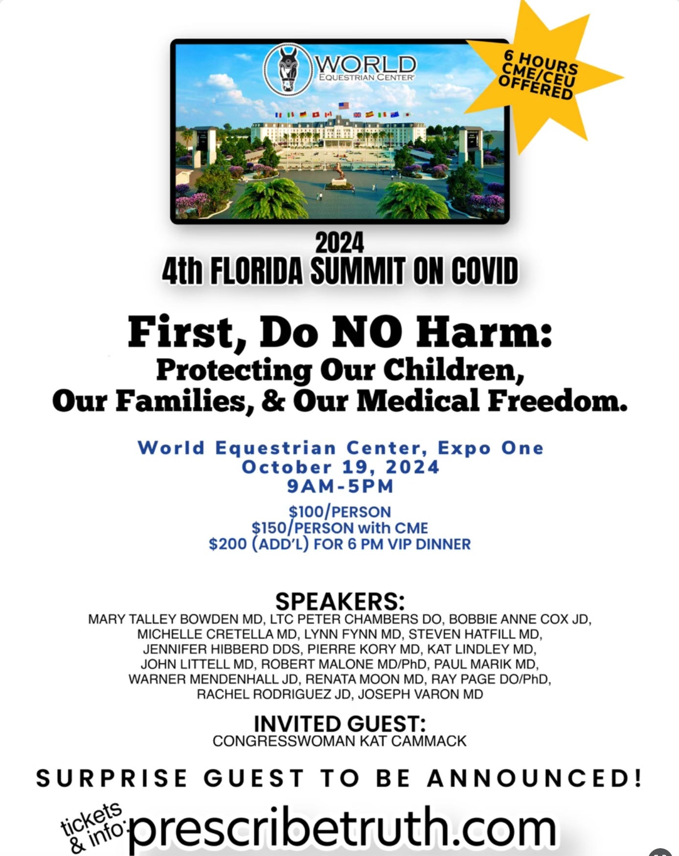 A funny coincidence is that the Florida Summit for Health and Medical Freedom is happening at the World Equestrian Center on Saturday - so literally I will be speaking on mRNA self-amplifying vaccines, PsyWar, and riding Jade in a Horse Spectacular all on the same day! Heck maybe some of you want to go to both events too!