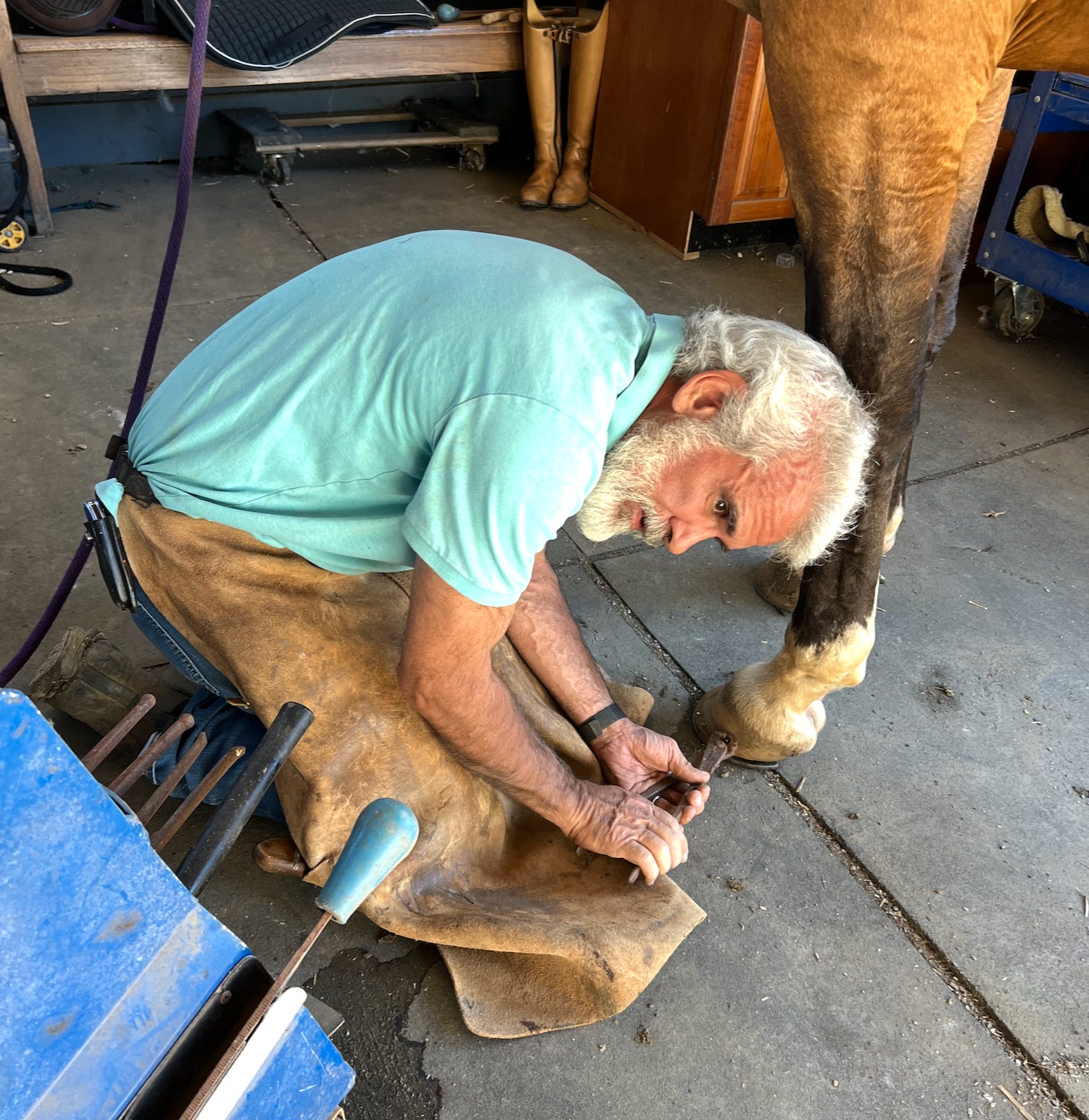 Then Friday - Jade had lost a shoe - that had to be reset back on (more pressure on my back). Trust me, the photo below is not me making a “happy face,” but Jade was a gem as usual and I got the job done. Not my best work - but good enough.