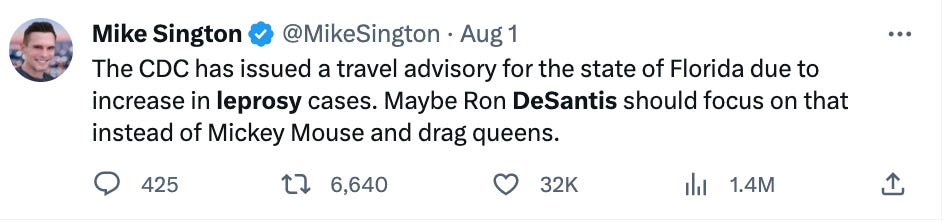 "Could this be what all the fearporn was really about? Getting another dig at Governor De Santis and the state of Florida?"