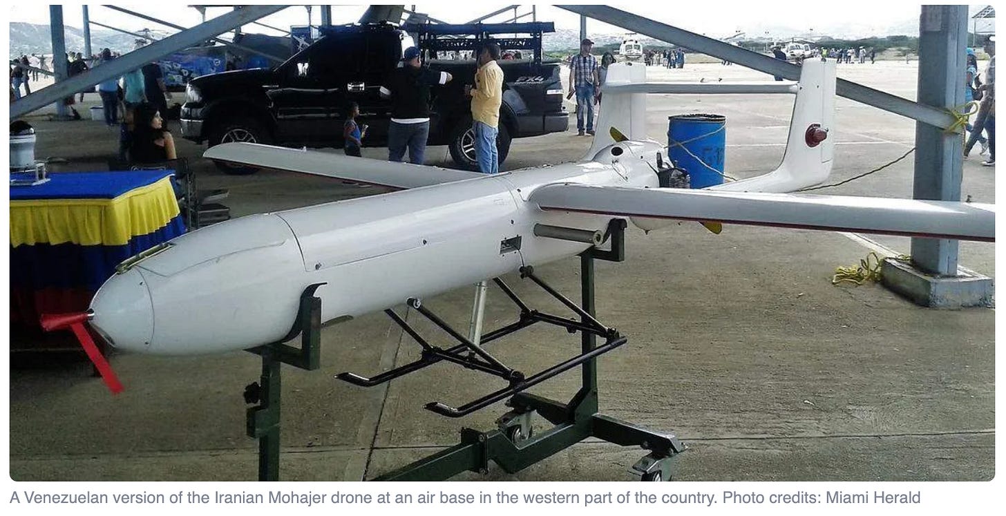 Let’s focus on one example to illustrate the point. Over the past several years, there has been substantial evidence that Iran has indeed helped Venezuela establish local drone manufacturing capacity, particularly of Iranian-designed UAVs like the Mohajer and Shahed families.