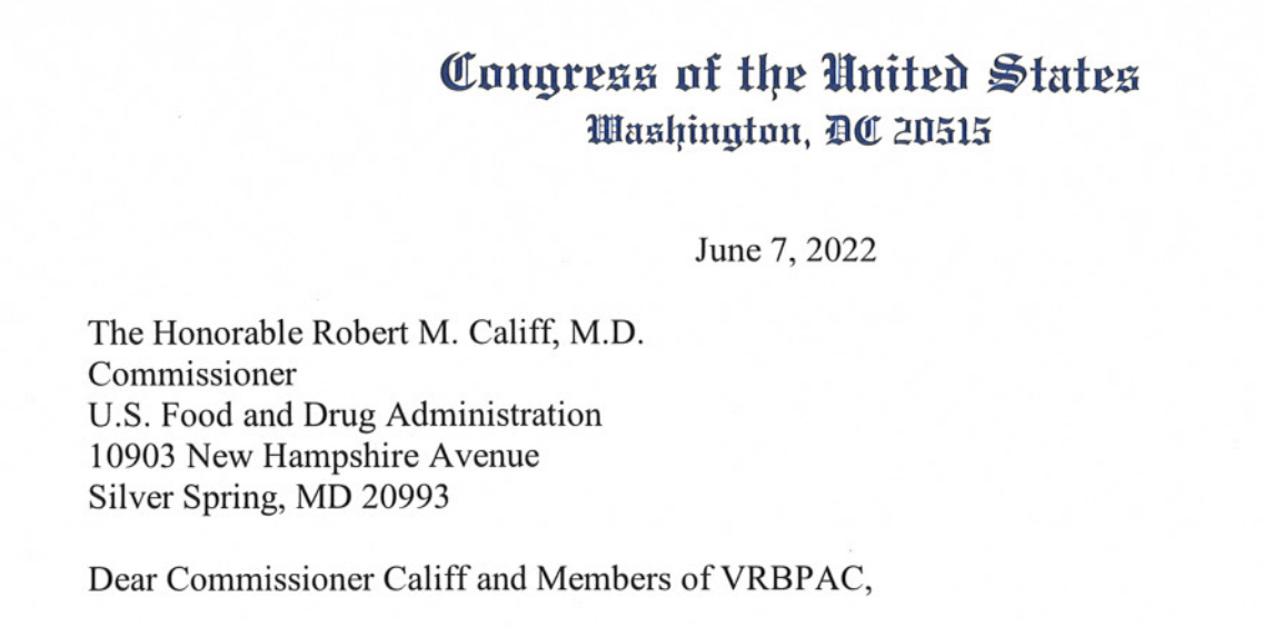 That this letter is necessary and that it is signed by 18 sitting members of Congress is a strong inditement about the state of the FDA. It is shocking that such a letter should be needed.