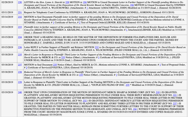 It’s important to remember fact-finding hasn’t actually happened here. We don’t know if a jury or judge will find that the plaintiffs are telling the truth or acting out of some grudge. We don’t have Merck’s response on the facts yet – Merck’s documents mostly, though not only, addressed the reasons the claim should not move forward, what the relators failed to prove. We have a decision allowing the suit to proceed to fact-finding.