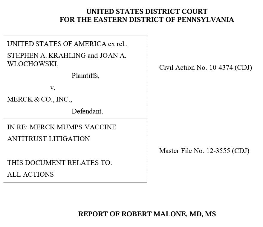 But the experience that really opened my eyes to the corruption in industrial vaccine development involved being hired to do diligence and generate a comprehensive expert witness report concerning two legal cases involving the whistleblower (qui tam) cases brought by Stephen A. Krahling and Joan A. Wlochowski (former Merck employees) against Merck & Company, Inc. HHS Secretary Robert F. Kennedy recently referred to these cases in an interview with Dr. Phil.