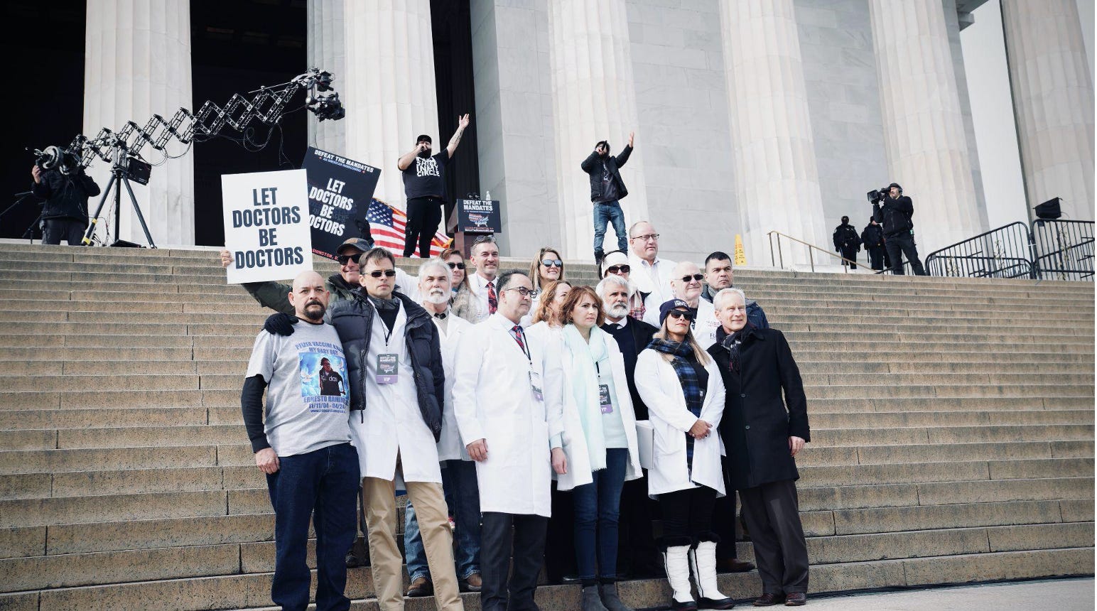 Photograph by: Rachel J. Katz. Pictured (among others): Dr. Robert Malone, Dr. Jill Glasspool Malone, Dr. Peter McCullough, Dr. Christina Parks, Dr. Pierre Kory, Dr. Paul Alexander, Dr. Heather Gosling, Dr. Paul Marik, Dr. Ryan Cole, Dr. Lynn Fynn, Dr. Richard Urso, Dr. Aaron Kheriaty, Ernest Ramirez, Hi-Rez, Jimmy Levy.
