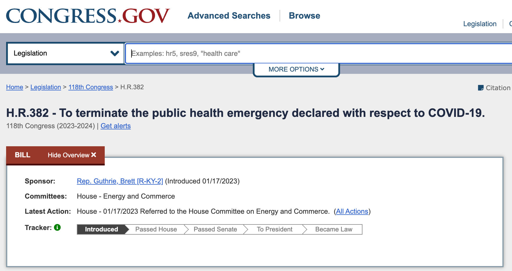 The first step is that Congress has to act to finish what the Senate has started by declaring the public health emergency over. The public health emergency must end and the only way for this to happen is for the House to also declare an end to it.