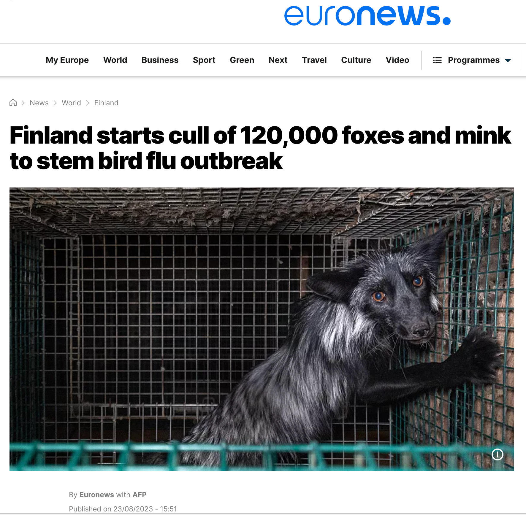 Finland, Europe's leading producer of fox fur, has begun slaughtering 120,000 foxes and mink to stem an outbreak of avian flu that has hit fur farms, the authorities announced on Wednesday.