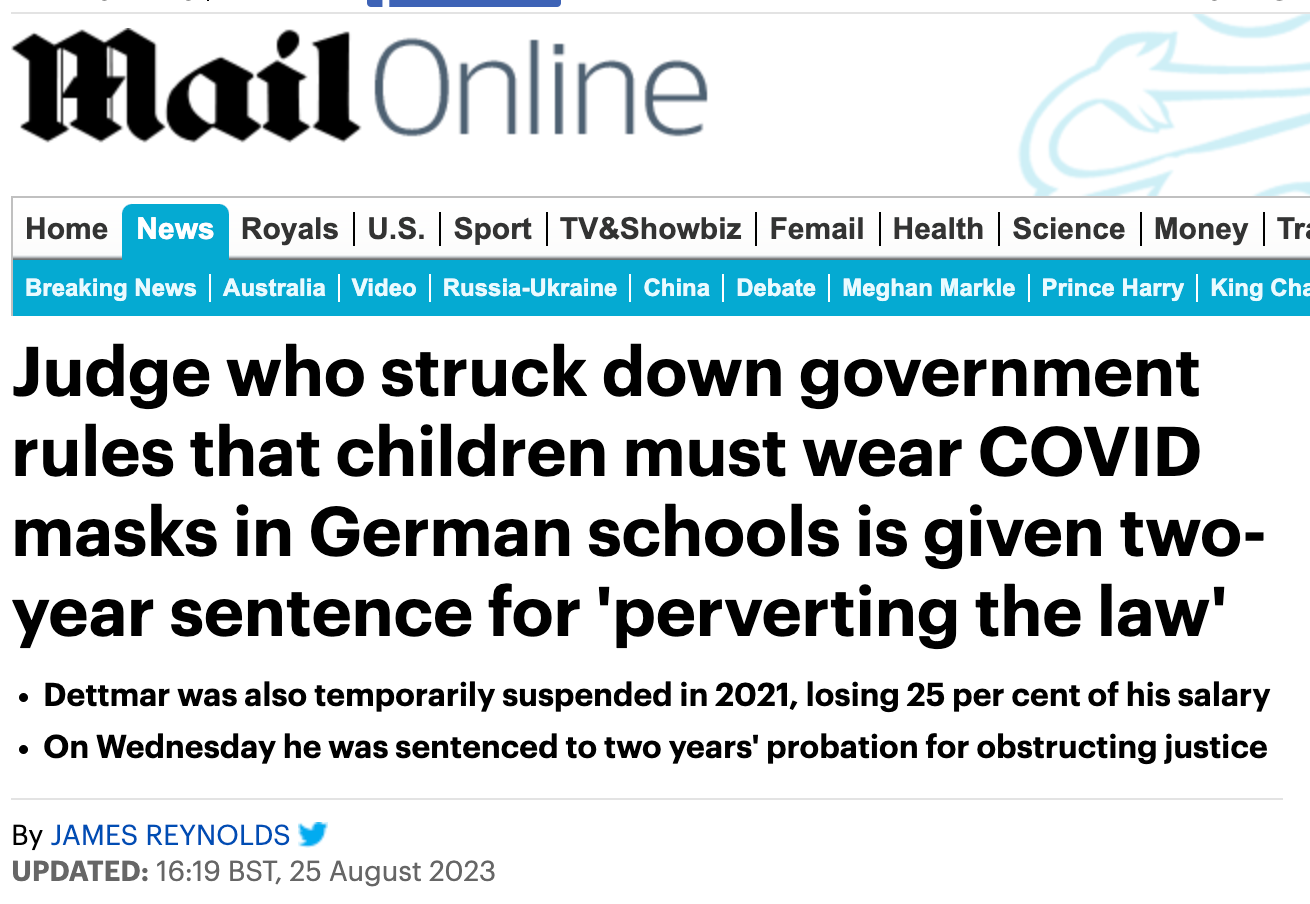 He speaks of the 'lack of benefit of mask-wearing and of complying with social distancing regulations for the children themselves and for third persons' and the perceived 'unsuitability' of PCR and rapid tests for measuring infections'.
