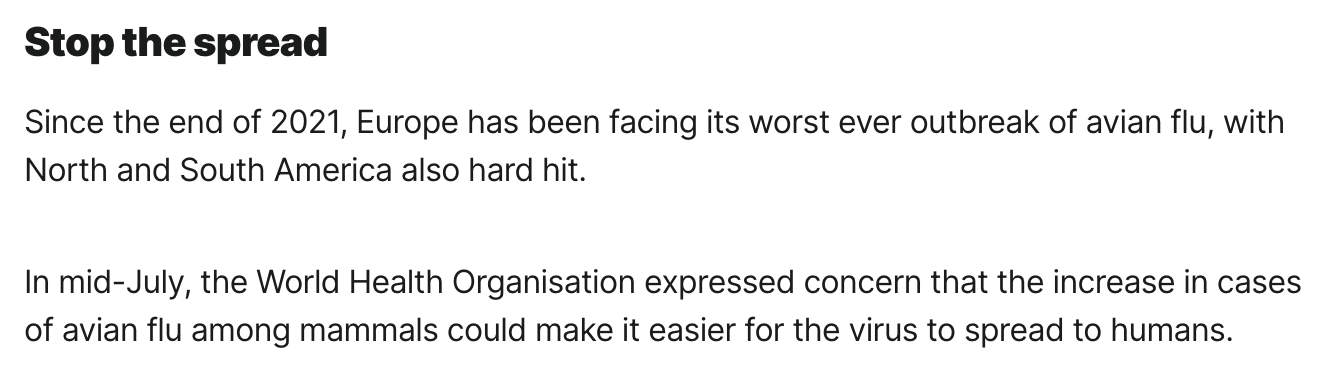 Another episode in “The World Has Gone Crazy”…. Avian flu is spread largely by wild birds. The amount of virus that water fowl can distribute is enormous.