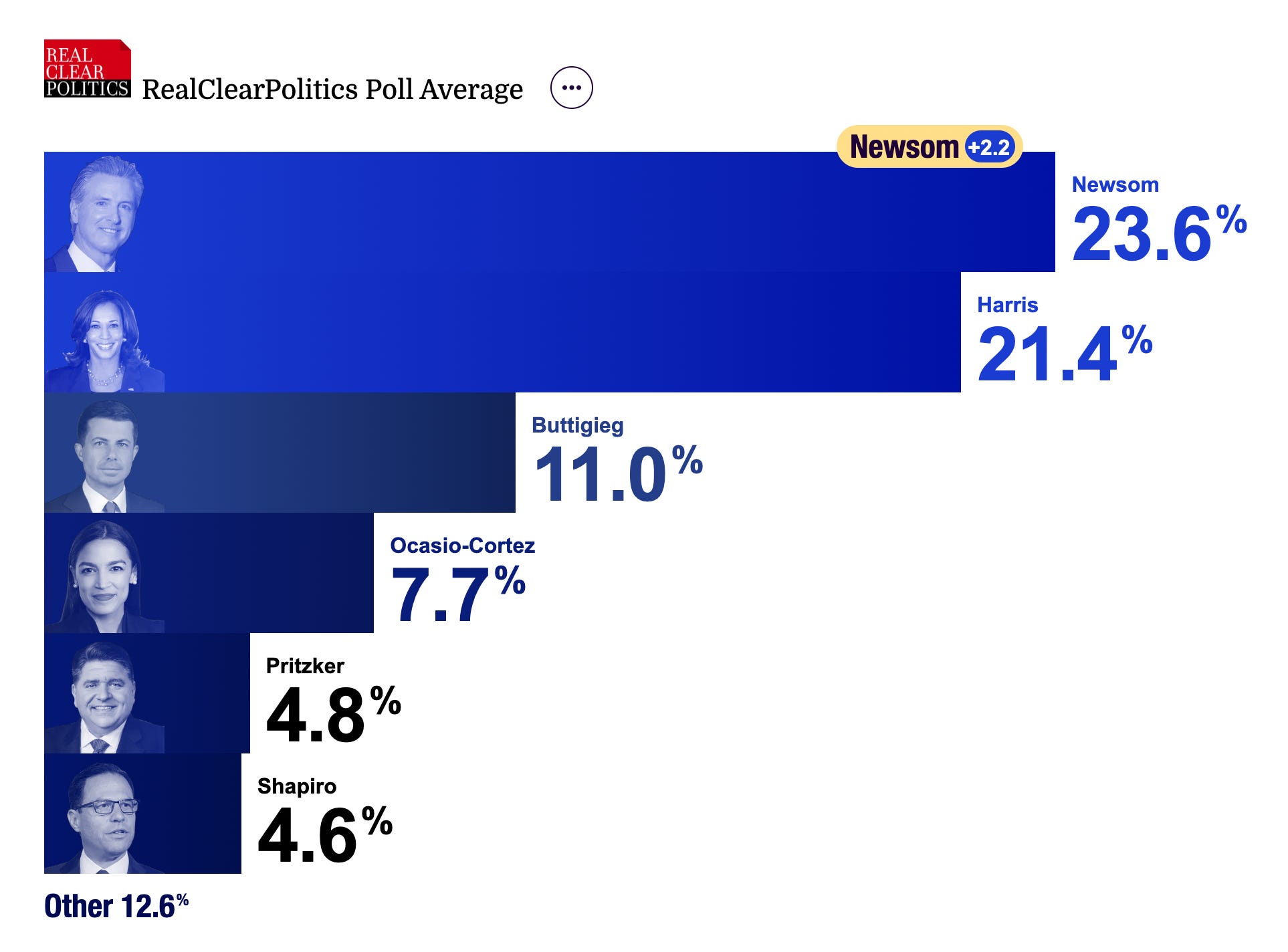 Real Clear Politics just released a new poll of polls comparing the leading democrat party candidates for president in 2028.