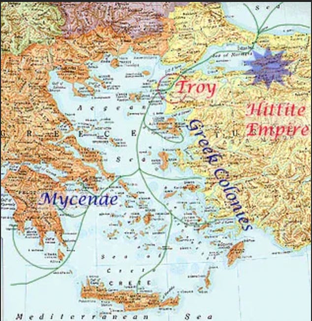 The copper was coming out of Cyprus and so forth, and the Mycenaeans controlled that, so there was a lot of reason why there would've been a conflict between these two civilization. Therefore, the war between the Mycenaeans and Troy most likely actually happened.