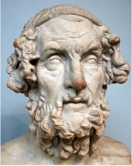 But around the year 1180, 1200 BC, the Mycenaeans just disappeared. They completely disappeared from history. Archaeologists have now have been able to piece together quite a bit of information from remaining relics, and have learned a lot of things about their civilization. We know that their cities were burned, their temples were razed, their palaces were destroyed. Mycenaean cities essentially were entirely vacated, and thousands, tens of thousands of people in this area just disappeared from the cities and began nomadically roaming elsewhere. There is a fair amount of archeological evidence that exists, but there's also a great deal of legend, and of course there is Homer. Homer tells us stories of the Mycenaean civilization, the most famous ones obviously being the Iliad and the Odyssey.