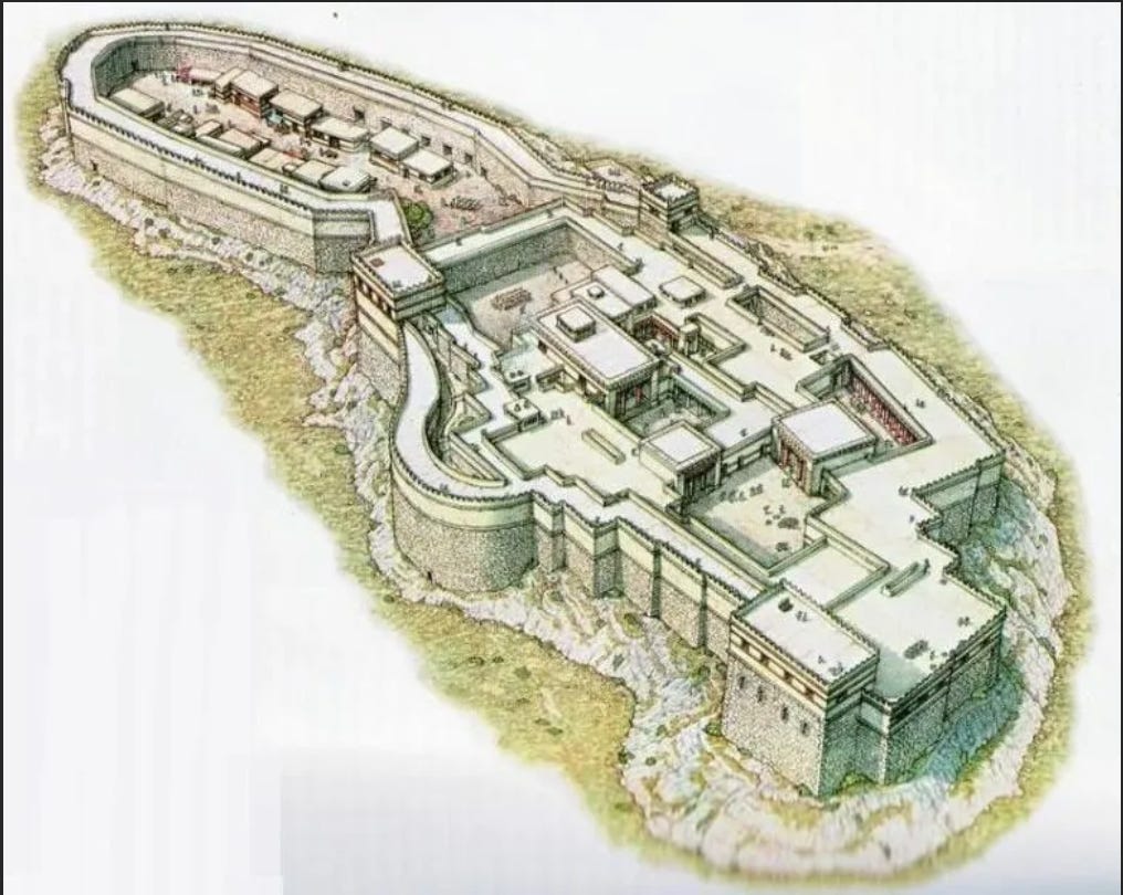 Now consider this tribe which has arrived in the Peloponnesian Peninsula by island hopping, not long after the start of the agriculture revolution. They come across a place. There's abundant water. The soil was very fertile, and on a little hillside, about 900 feet above sea level, they built a fortress. They had 360 degree views of the surrounding valley. It was a pretty strategic location. They could see and defend against any potential oncoming, invading enemies. They were only about 12 to 15 kilometers from the coast, so they were protected from storms, but at the same time, they were only about a half a day's journey to the coast if they needed to get there. So it was a really, really good place, and they built a fortress there. That fortress, in time, became a great city and eventually a great power in the region.