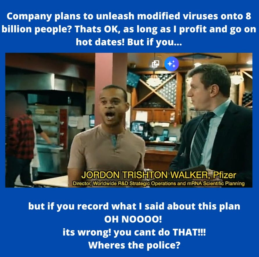 People are hitting Google like crazy with queries regarding Jordon Walker, Pfizer and Veritas. As they did when I said “mass formation psychosis” on Rogan #1757, Google manually interferes with the searches, returning wishy washy “these results are changing rapidly” screens instead of actual links. So, now we have a pretty clear smoking gun involving collusion between Pfizer and Google to suppress the story. Then everything, anything, having to do with Jordon Walker, MD gets memory holed. Wiped from the internet, including the Wayback machine. And then the chaos agents, bots and trolls descend on all social media channels. Sowing doubt that Jordon Walker is even a real person. Floating paranoid conspiracy theories that this is all a big deep-fake set up of Veritas, O’Keefe and myself. Which of course get amplified by the usual actors. Now THAT is an example of Fifth Gen Warfare power! And by the way, I gently advise that readers who were aware of this as it was happening set a check-bit in their brains on the names of those chaos agents who actively promoted this false narrative. Some show the signs of true controlled opposition, and some appear to have been acting as pollinating bees. By their actions you will know them. My advice, if you were one of the bees, is to own up and clearly acknowledge the documentation demonstrating that this Pfizer nightmare is real.