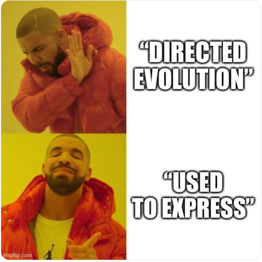 An example of directed evolution with comparison to natural evolution. The inner cycle indicates the 3 stages of the directed evolution cycle with the natural process being mimicked in brackets. The outer circle demonstrates steps in a typical experiment. The red symbols indicate functional variants, the pale symbols indicate variants with reduced function. Source: Wikipedia, encyclopedia of the approved narrative.