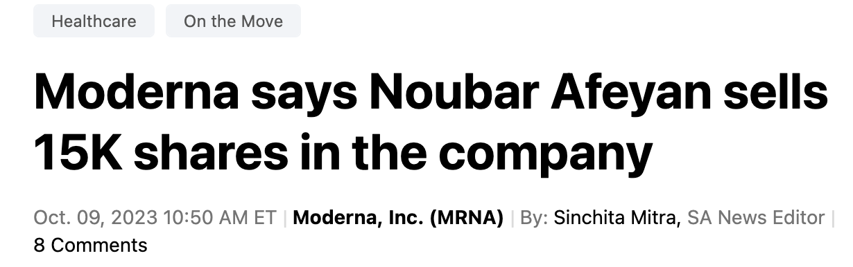 What we do know is that directly after this Moderna press release, the co-founder of Moderna sold off 15,000 of his shares (worth $100 each). It will be interesting if he continues his sell-off…