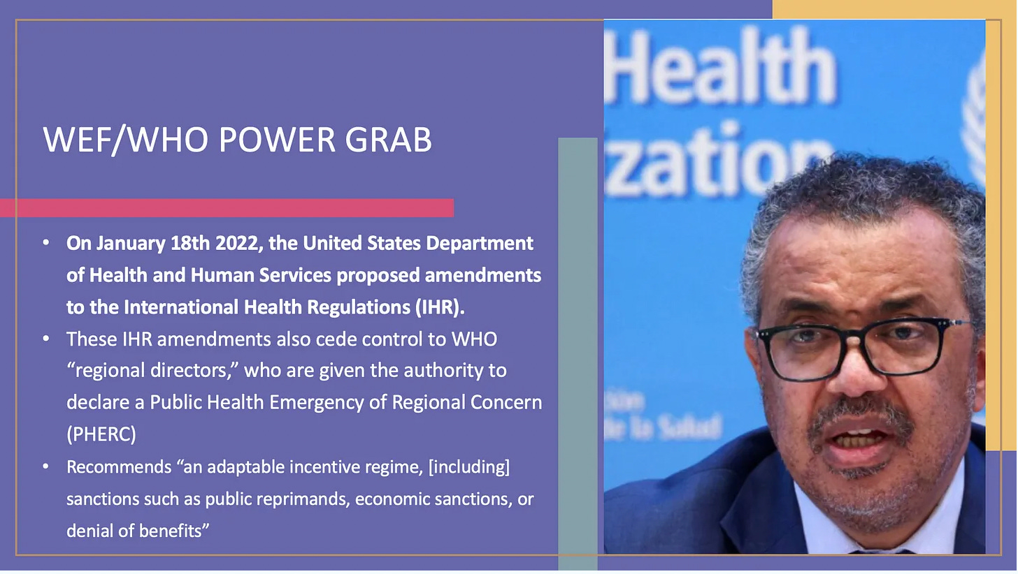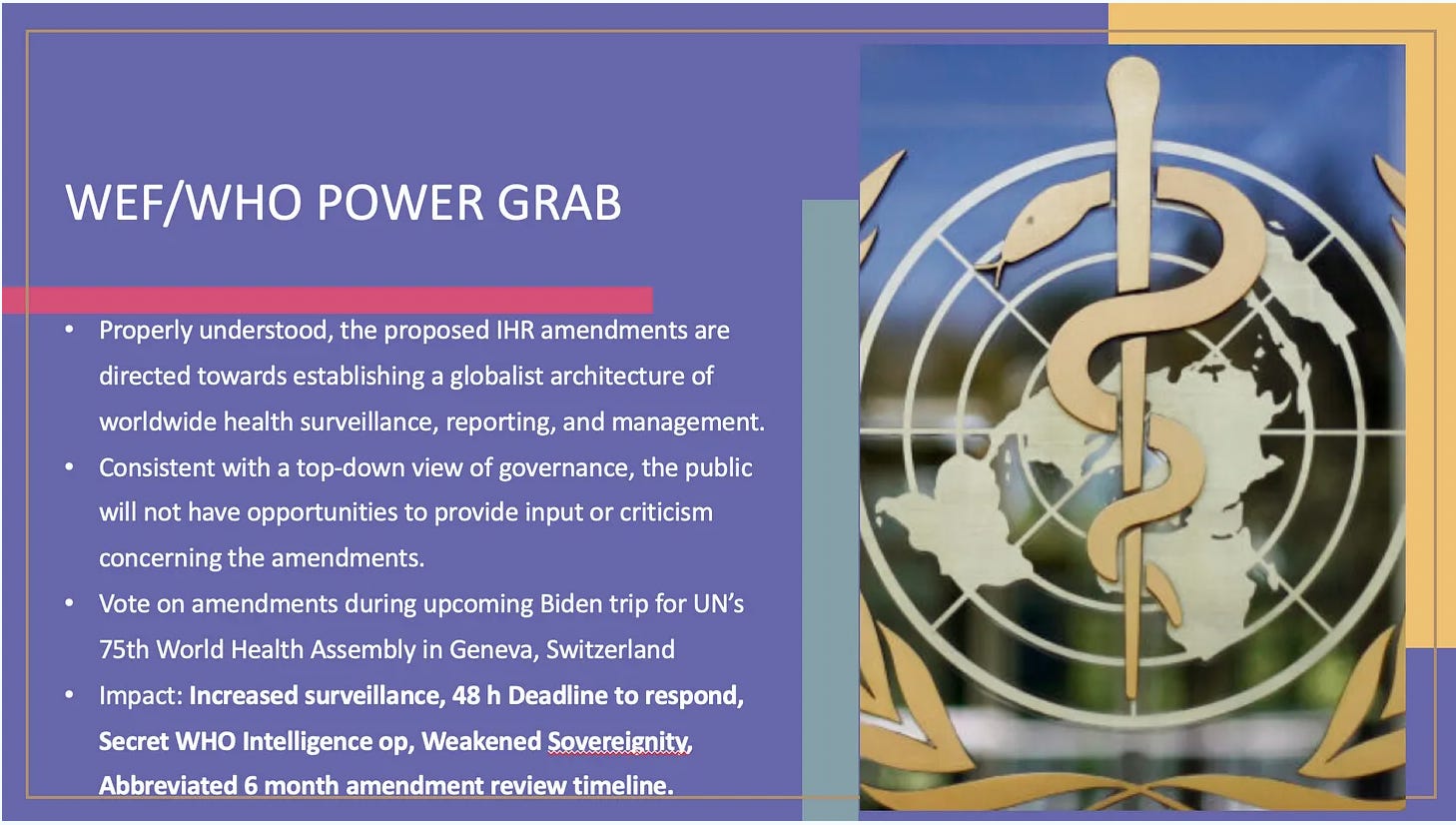 The answer is that the HHS-proposed International Health Regulation modifications to the WHO charter are coming back up for discussion in November. Remember those? If not, please read this substack for the necessary background: Child Sacrifice, WEF/WHO Power Grab. It is incessant. They just will not stop.
