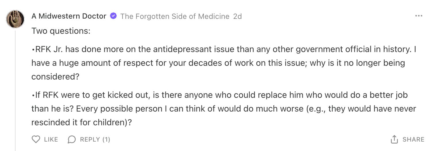 So, I am pretty shocked by the outrage against Kennedy, with many of his former friends and colleagues even calling for his outright resignation. Take Dr. Peter Breggin, for example - whose lengthy and frankly irrational tirade this week against Kennedy included the following: