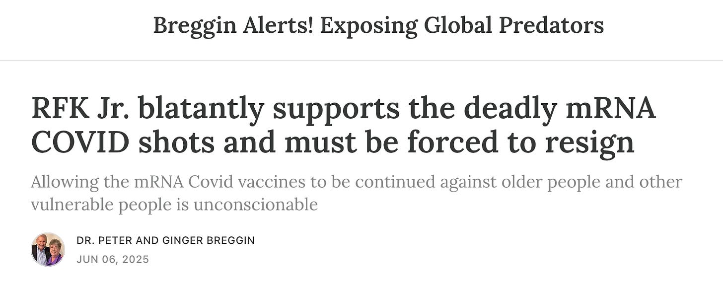 But the influential nattering nabobs of negativity from the medical freedom movement just won’t stop attacking him for what they arbitrarily define as his lack of progress in ending the mRNA vaccines. They don’t seem to understand that MAHA was always bigger than one segment of his MAHA agenda, even if it happens to be the segment that they are particularly passionate about.