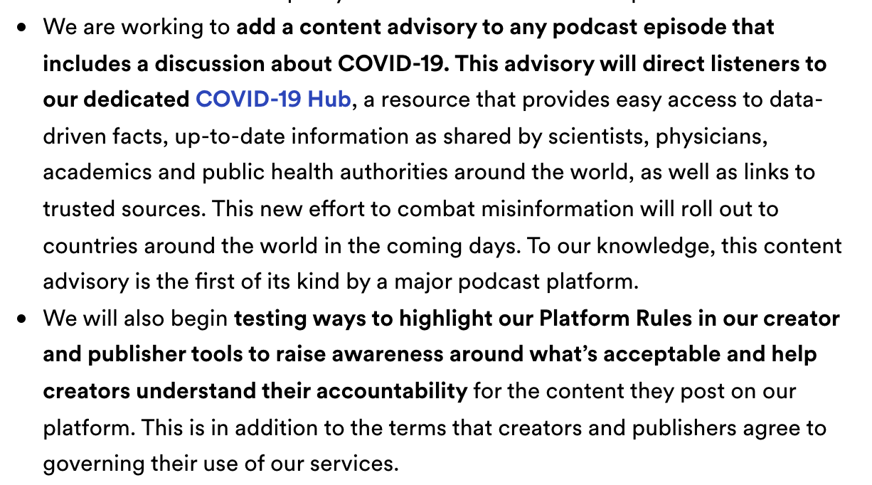 Spotify says they'll have "a COVID-19 hub that contains facts and information from medical and health experts." That's a fine idea. McCullough and Malone are two experts who certainly can provide good content for it, as can the others who testified at Senator Johnson's January 24 hearing.