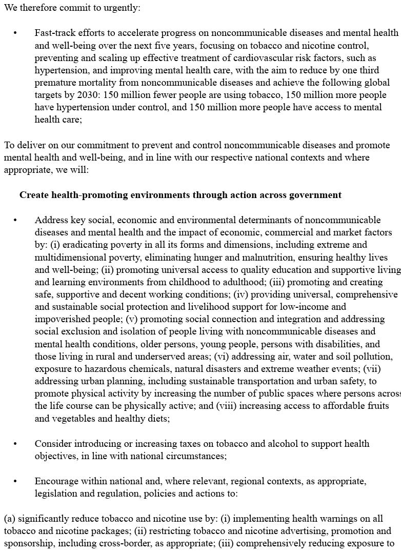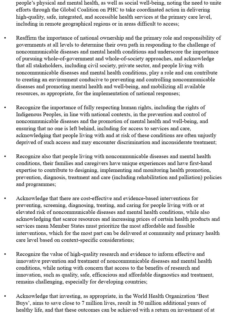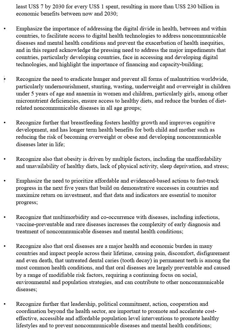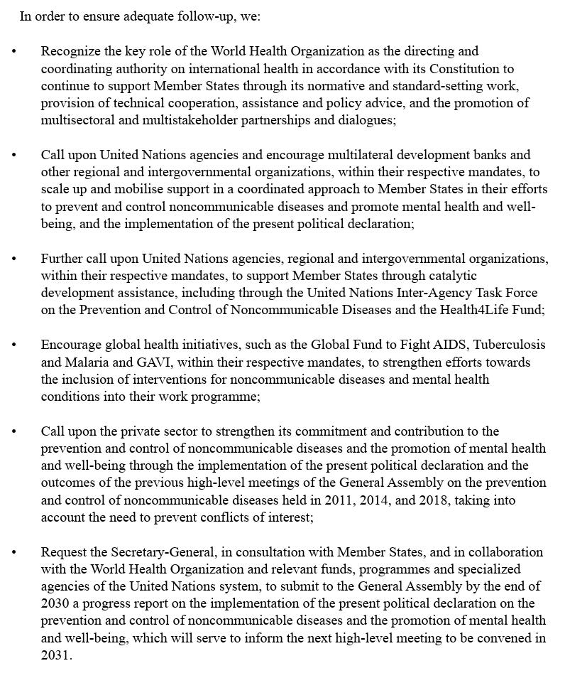 You can find the WHO statement regarding the United Nations Political declaration on Non-Communicable Diseases hotlinked here and at this web address: