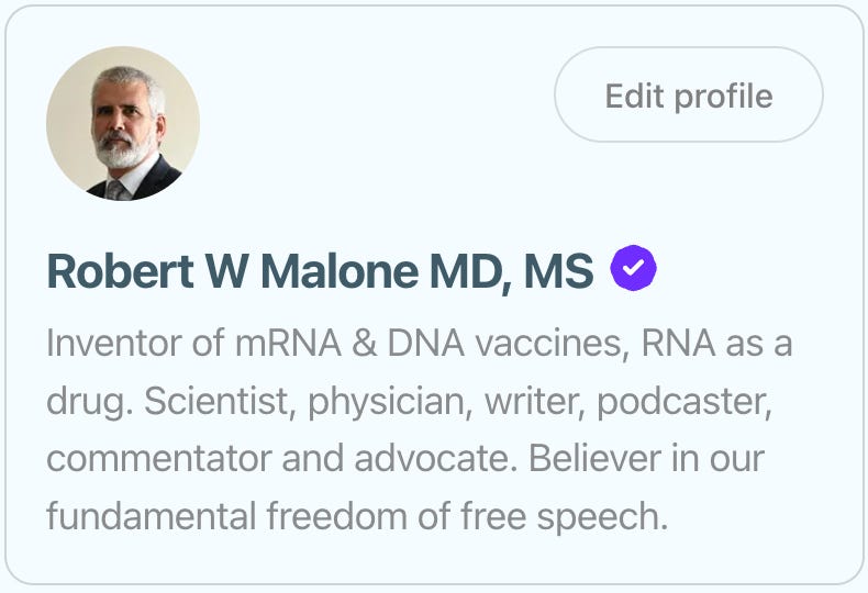 This substack, titled “Who is Robert Malone?”, is currently running at about 318,000 subscribers, of which only a tiny fraction elect to pay to subscribe. The goal has been to get information out, not grift by trying to sell goods or services, and hope that enough will voluntarily choose to pay for a subscription that we can afford to feed the horses, travel to testify to governments and speak at various meetings, and maintain a decentralized donor base so that we do not have to shape our messaging to meet donor requirements. Thanks to your support, we have been able to achieve these objectives.