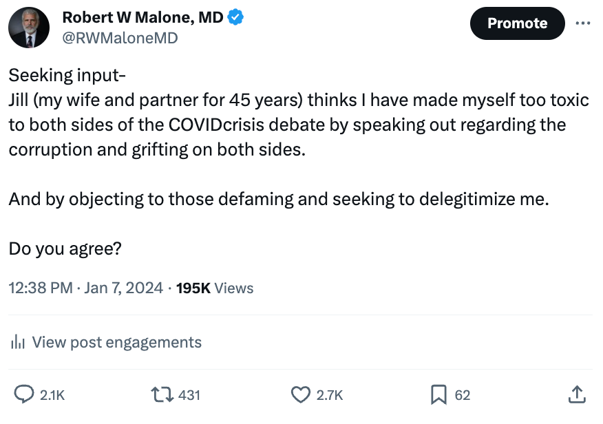And that I should just avoid both responding to those engaging in defamation and character assassination and also avoid criticizing those who (in my opinion) are abusing the small “resistance” community by exploiting personal status to profit from the COVIDcrisis. Some call this “grifting”, something that I have tried hard to avoid.
