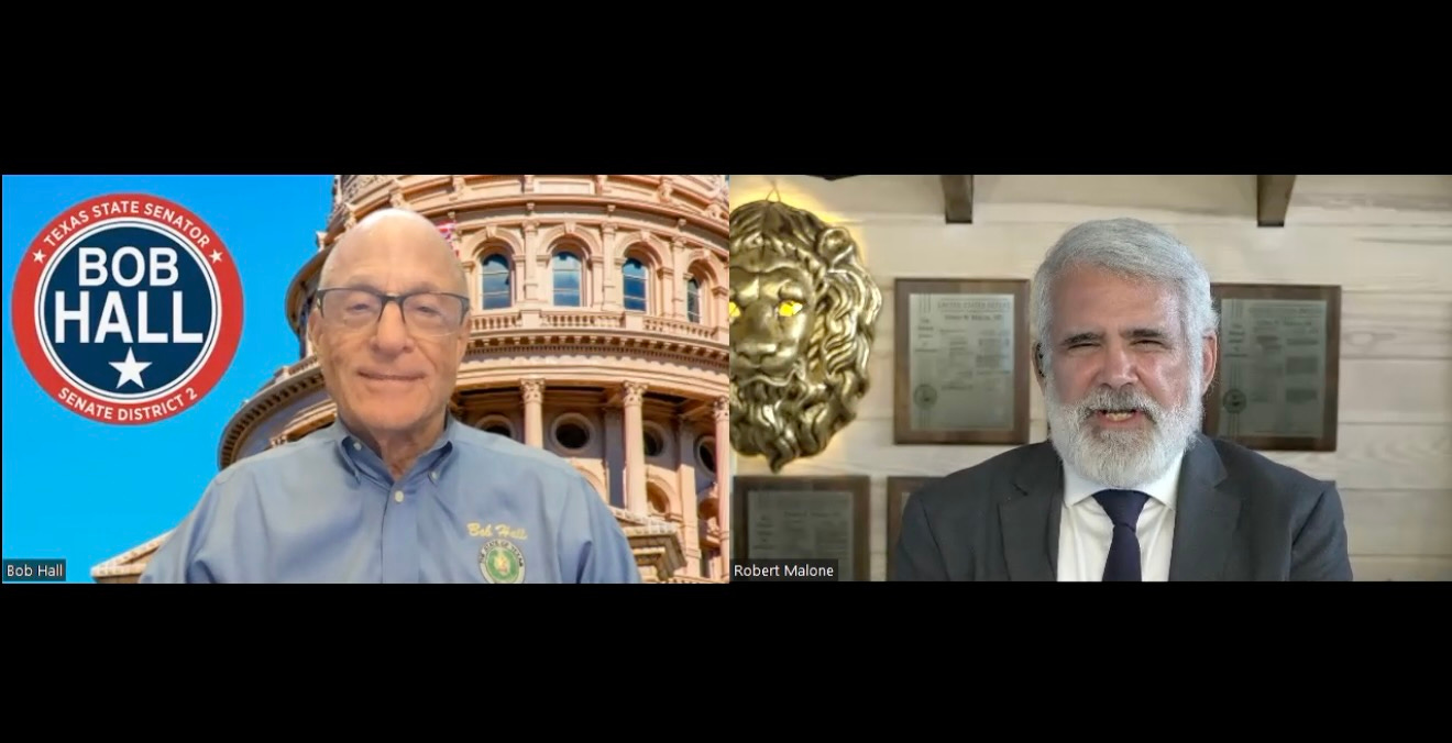 Dr. Robert Malone: Well, that's consistent with the Senator Bob Hall that I've come to know and all of us love is a man of exceptional courage and fortitude and integrity that has stood with us, the physicians, and other healthcare providers all the way through this. And I am just full of joy in your success and that of your colleagues and fellow senators. As you know, I've done what I could to support you, but it's nothing compared to the fight that you've had to take on yourselves down there. And I also do what I can to support Jo Ladapo, and the state of Florida, in various ways. And it's been remarkable that we've had these two conservative states that have really led, not just the country, but the world in standing up to the tyranny that's been imposed on all of us over the last coming on four years now, and within the state of Texas, you have been a rock solid backbone.