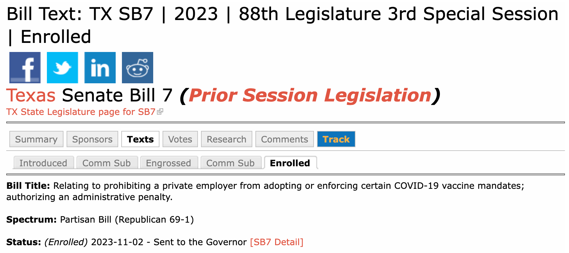 The number one right, are individuals, individual rights. That's what our whole government is shaped around, is protecting individual rights. And so that I kept arguing, arguing, and then finally got the last holdout. We just barely passed the bill in the Senate. It went over to the House. They tweaked it a little bit, which allowed... Going out of the Senate, it really didn't cover the medical students they way we wanted it to, and the fine was only $10,000. And so the House upped it to $50,000 if a company violates it, each incidence of violation, and they worded it so that when it came back, I can stand up on the floor and confirm with the author that the bill now covered everybody. And when I was done, a few minutes later, Senator Kolkhorst got up and asked a similar question, but she specifically pointed out the medical students and medical personnel were covered by this. And so we have a bill, as soon as the Governor signs it, that actually-